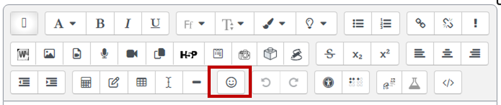 When creating items for you Moodle classroom, you can easily add visual cues to help student navigate the classroom by adding emoticons. These are small images that appear inline with other characters. There are other ways to add images to your courses, but emoticons are the easiest to insert.
